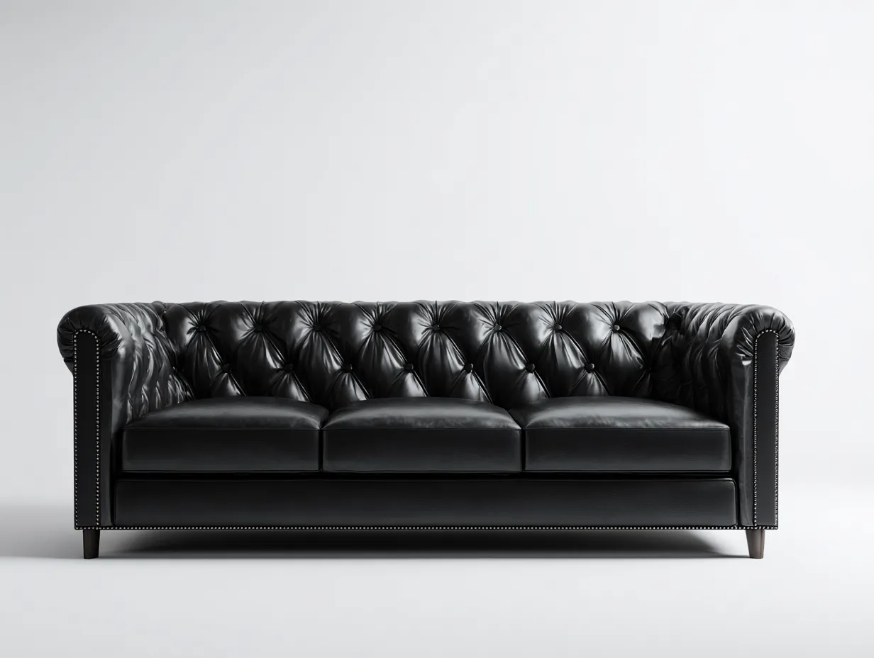 Divani a 3 posti-pelle-212x94x76 cm-Nero-Stile classico