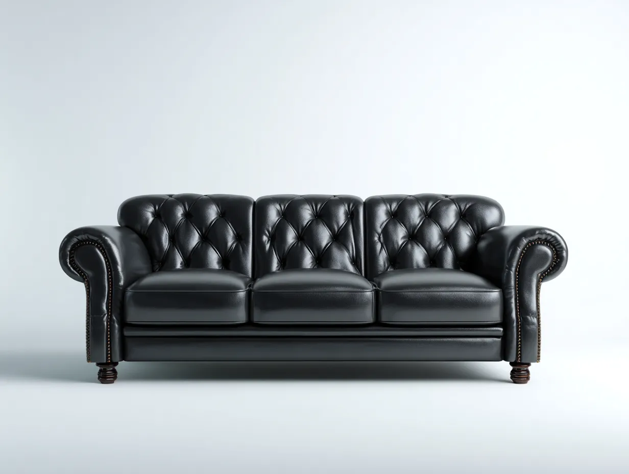 Divani a 3 posti-pelle-225x96x74 cm-Nero-Stile classico
